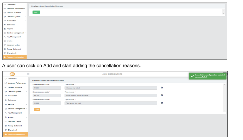 - Newly added reasons appear in consumer flow on “Back to Cart”.