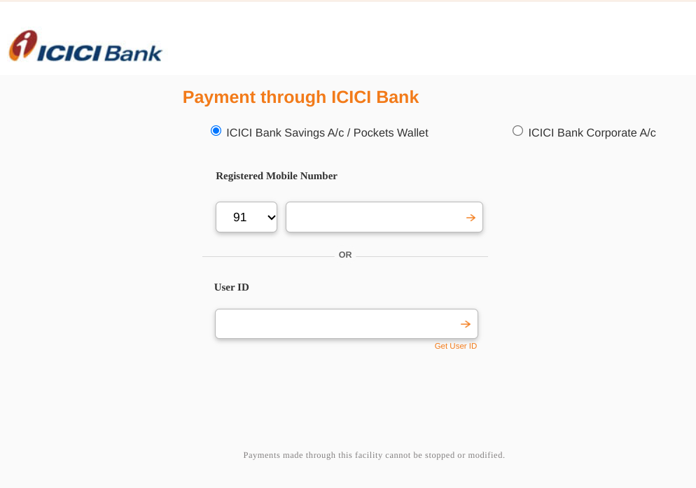 For Net Banking, customers will redirected to the respective Bank Login page. Customers are expected to login with their net banking credentials and then approve the payment