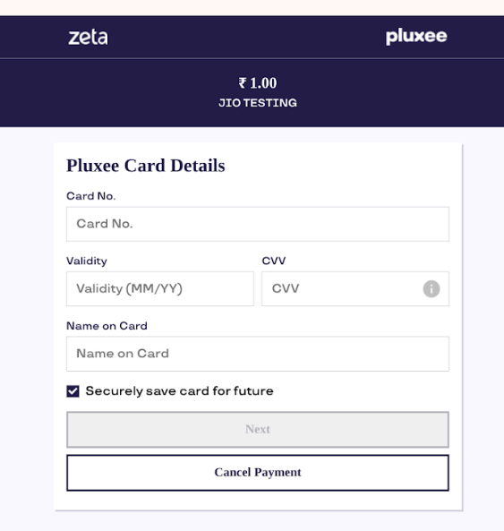 For Sodexo / Pluxee, the redirection will take customer to the Pluxee Card Capture page where user will enter Pluxee Card details and complete the transaction
